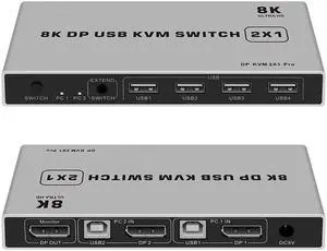 KEHIPI 8K DisplayPort KVM Switch 2 Port USB and DP Switch for 2 Computers Share Keyboard Mouse Printer Monitor for Laptop,PC,Xbox HDTV