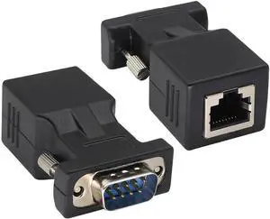 BUCIER 2-Pack DB9 to RJ45 Extender - Male & Female - 9Pin Serial Port to Ethernet LAN Network Adapter - Multimedia Video & Extend Transmission Distance - Compatible with DB9 Devices