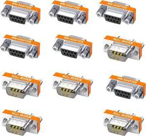 DB9 Null Modem Adapter Male to Female Slimline Data Transfer Serial Port Adapter Set of 11