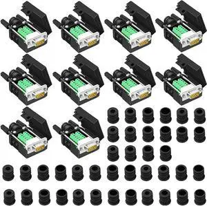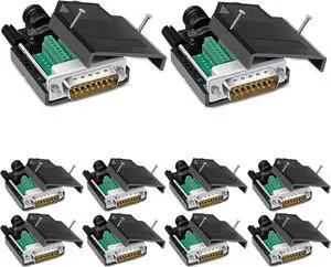 10PCS DB15 Solderless Connector, RS232 D-SUB Serial to 15-pin Port 16mm Thinner Terminal Female Adapter Breakout Board with Case Long Bolts Nuts