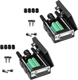 DB15 Solderless Serial to 15-pin Port Terminal Female Adapter Connector Breakout Board with Case Long Bolts Nuts (2PCS Female)
