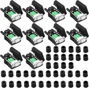 10PCS DB9 Female Breakout Connector,DB9 Solderless RS232 D-SUB Serial to 9-pin Port Terminal Adapter Connector Breakout Board with Case Long Bolts Tail Pipe