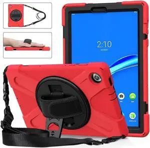 Case for Lenovo Tab M10 FHD Plus 10.3 inch 2020 2nd Generation / K10, TB-X606F/TB-X606X/TB-X6C6F/TB-X6C6X, Heavy Duty Rugged Drop Resistant Shockproof Cover with Stand/Hand & Shoulder Strap Red