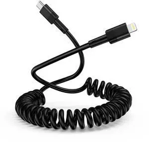 Coiled USB C Cable for Car,5FT USB C to Lighting Cord Fast Charging Cable Retractable Lightning Carplay Cable for iPhone 14 Plus/14 Pro/14Pro Max 13 12 11 Pro Max Mini XR XS 8 7 Plus XR SE iPad iPod