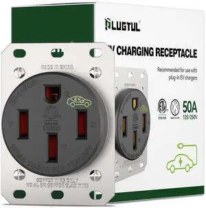 PLUGTUL NEMA 14-50R Receptacle for EV Charging, 50AMP EV Outlet with Wall Plate, Industrial Grade, ETL Listed, 240V Outlet for EV Charging, Dryers, RVs, and Appliances
