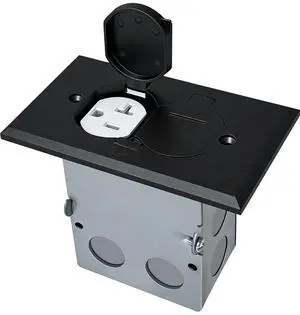 Floor Outlet Cover Box, Recessed Floor Outlet Cover Plate, Flip Lid 20A Tamper Resistant Receptacle Socket with Watertight Gaskets (Black)