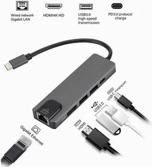 GaN 200W Fast Charger 6-Port USB A/C Charger QC3.0 PD3.0 Quick Charge for MacBook Pro/Air, Dell XPS,iPhone 15 Pro Cell Phone Charger Desk Charger Adapter