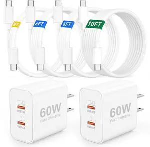 45W Dual USB C Fast Charger for iPhone 16/15 Pro Max, 2-Pack 45W Type C Wall Charger Block & 60W Long 3/6/6/10FT USB C Cable - PD3.0 Power Adapter Fast Charging for iPhone 16/16 Pro/15/15 Pro Max/Plus