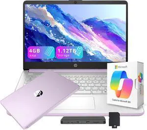 HP Stream 14" HD Laptop for Students & Business, 13th Gen Intel 4-Core, 4GB RAM, 1.12TB Storage(128GB UFS+1TB Docking Station Set), 1-Year Office 365, AI Copilot, Windows 11, Lavender Purple