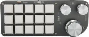 ACOGEDO One Handed Mechanical Keyboard with 15 Keys and 3 Programmable Knobs, RGB and USB Compatibility, Multifunctional Mini Gaming Keypad for Effortless PC Control