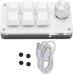 6 Key One Handed Programmable Mechanical Keyboard with Knob, Wired, Plug and Play, for Gaming and Office, Multi Functional Mini Keypad (White)