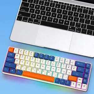 68 Keys Mechanical Keyboard, 60% 2.4G Cordless BT 3.0 5.0 Type C Wired Keyboard with RGB Backlit, Blue Switch, 3000mAh Compact Keyboard for Gaming