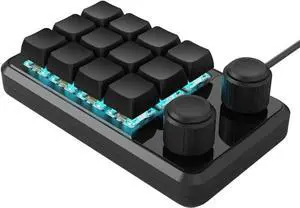 Evyicun Programmable 12 Key Mini Mechanical Gaming Keyboards with Two Knobs and RGBs Lighting Type C Cable (Black)