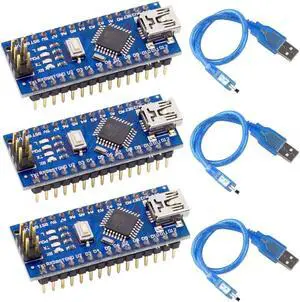 FainWan 3pcs Mini Nano V3.0, Nano Board ATmega328P CH340 5V 16MHZ Micro-Controller Board Compatible with Ar-duino IDE Mega2560 Rasp-Berry Pi (Nano x 3 with USB Cable)