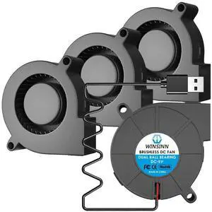 WINSINN 50mm 5015 Tiny Cooling USB Blower Fan 5V, 50mm Micro Mini USB 5 Volt Fans Blower Turbine Turbo Dual Ball Bearing, 1000mm/39in Cable Brushless Cooling 50mmx15mm (Pack of 4Pcs)