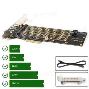 Dual NVMe PCIe Adapter, M.2 NVMe SSD to PCI-e 4.0 x8/x16 Card Support M.2 (M Key) NVMe SSD 2280/2260/2242/2230