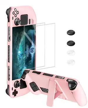 Steam Deck Case,Steam Deck OLED Protective Case,Non-Slip Skin Protective Shell Accessories with Kickstand ,2 Screen Protector, 4 Thumb Grip (Pink)