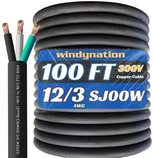 100 Feet 12/3 SJOOW Cable Cord 12 AWG 3 Conductor SO Wire - 12 Gauge 3 Conductor (12/3 Wire) 300V Portable Power Extension Cable for Motor Leads, Portable Lights, Battery Chargers