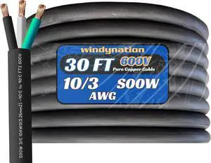 WindyNation 15 Feet 6/3 6 AWG SOOW SO Cable Cord Wire - 6 Gauge 3 Conductor 600V Portable Power Extension Cord Cable for EV Chargers, Motor Leads, Portable Lights, Battery Chargers, and Machinery