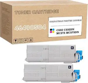 C532DN Compatible for OKI 46490504 46490503 46490502 46490501 Toner Cartridge, Work with C532 C532DN MC573 MC573DN Printer, High Yield 3,500 Pages Black x 2