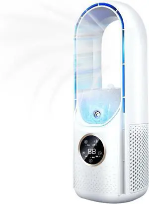 Desk Bladeless Fan with Misting, 11.8 Inch Personal Cooling Fan LED Small Quiet USB Table Fan with 6 Speeds, Touch Control Timing Air Conditioner Fan for Home Office Bedroom