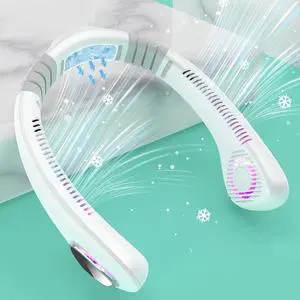 7 Colors Light Air Conditioner Neck Fan with Cooling Chip, omic Wearable AC Neck Cooling Fan, Powerful Wind Power 4000mAh USB Rechargeable Portable Neck Fan for Hot Flashing