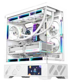 UNIWAY GAMING Aurora Series - Ryzen 7 5700X, RTX5060, 32GB RAM, 1TB NVMe SSD, Build-in LCD Screen, AIO Liquid Cooler, Windows11 Pro, AIReady, 1Year Warranty - Black RTX5060 White