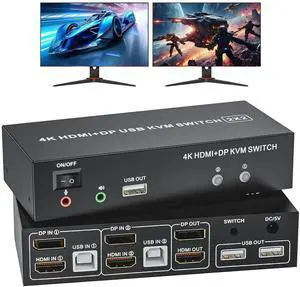 HDMI Displayport KVM Switch 2 Monitors 2 Computers, 4K@60Hz USB 2.0 DP 1.4 KVM Switch w/Audio Micro, Dual Monitor Supports Extended/Mirror Mode, 2-Port for 2 PC Share 1 Set of Keyboard Mouse Printer