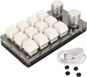 Mini 12 Key Mechanical Keypad with 2 Knobs, DIY Programmable, Blue Switch, Wired Connection, Plug and Play, One Handed for Office, Gaming, Music Control (White)