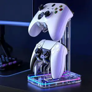 Dual Game Controller Holder RGB Acrylic Gamepad Desktop Stand Headphone Bracket For Game Console