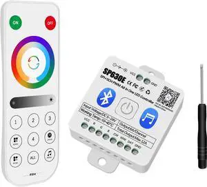 SP630E Bluetooth LED Controller Kit, 4 Zones 2.4GHz RF RB3 Remote & APP Control, DC5V-24V, Support FCOB/COB/SMD PWM & SPI Addressable RGB/RGBW Strips WS2811 WS2812B WS2814 WS2815 SK6812 IC