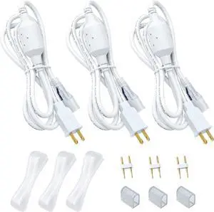 GZBtech 4.92FT Power Cord Connector Kit for 8 * 16mm LED Neon Rope Light,with Pins & End Cap & Heat Shrink Tube Set of 3