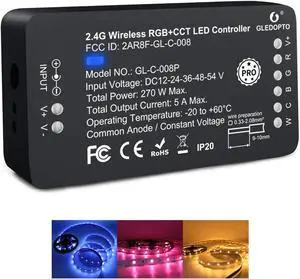 5in1 WB5 2.4GHz WiFi PWM LED Controller Compatible with Alexa Google Home Smart Life Tuya Smart APP Control for Dimming CCT RGB RGBW RGBCCT LED Strip Work with WR01RF WR02RF etc RF Remote