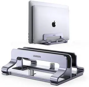 2-Slot Vertical Laptop Stand Holder Desk Compatible with MacBook Pro Air Laptop Stand Desktop Adjustable, Lenovo Ideapad, Surface Book, HP Notebook, Dell Chromebook Up to 17.3 Inch, Space Gray