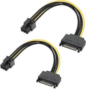 SATA to 6 Pin PCIe Power Cable,Sata 15 Pin Male to 6 Pin PCI Express Graphics Video Card Power Cable for Host and Graphics Card-8inch(2PCS)