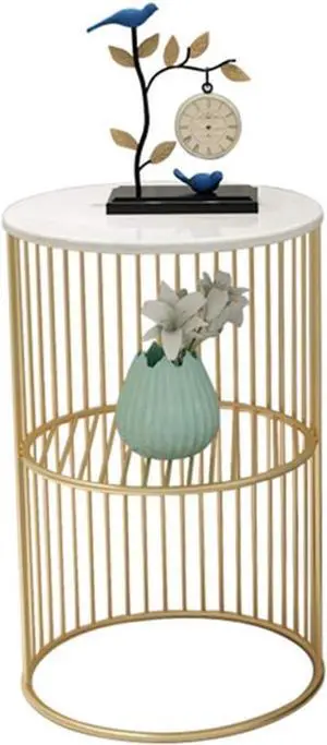 Metal Marble Storage Basket Side Table, 30x55 cm, Small Coffee Table, Bedside Shelf