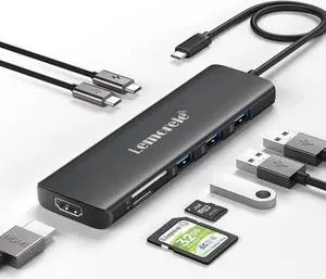 USB Hub 7 in 1 Type-C Docking Station with 3USB 3.0 Gbps Ethernet HDMI TF/SD Card Reader PD Charging Ultra Slim Portable Data Hub Plug and Play