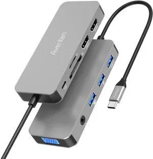 USB C Hub 12 in 1, Type C Docking Station with 3 USB, 2 USB C, 2 High Definition Multimedia Interface, Ethernet, VGA and 3.5mm Sound Ports, Storage Card and Memory Card Reader