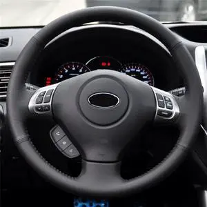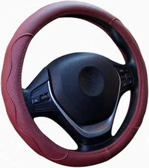 38cm Car Styling Steering Wheel Cover Embossed Brown PU Leather