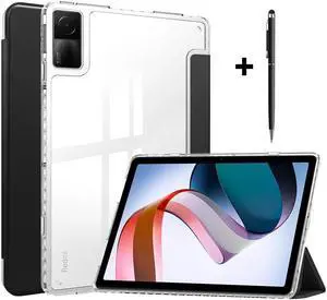 BONAEVER Protective Case for Xiaomi Redmi Pad 10.61 inch 2022 with S Pen Holder Transparent Hard Shell Back Trifold Smart Stand Cover with universal Stylus Pen