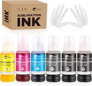 Hiipoo Sublimation Ink for ET-8500 ET-8550 Wide-Format Supertank Printers Heat Press Transfer on T-Shirt Tumblers (BK PB C M Y GY)