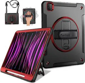 Case for iPad Pro 12.9 Case 2022/2021: Military Grade Heavy Duty Shockproof Cover for iPad Pro 12.9 Inch 6th/5th Generation- Pencil Holder - Rotating Stand - Hand/Shoulder Strap - Red