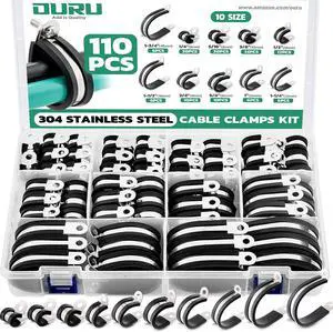 110PCS Cable Clamps Assortment Kit,10 Sizes1/4" 5/16" 3/8" 1/2" 5/8" 3/4" 1" 1-1/4" 1-1/2" 1-3/4" Stainless Steel Rubber Coated Cushioned Insulated Cable Clamp,Automotive Wire Pipe Clamps