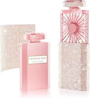 Bling Handheld Personal Fan, Rechargeable with 3 Speeds, Crystal Pull-out Portable Cooling Fan for Girls, Women - Pink Rhinestones