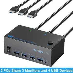 HDMI KVM Switch Dual Screen 2 Monitors 2 Computers 2 in 2 Out,4K@60Hz USB KVM HDMI Switches with Audio HDMI2.0 Ports + 4X USB3.0,Supports 4K 60Hz,1080P 144HZ,RGB 4:4:4,3D,HDR,HDCP,Hotkey,DarkishLimited time offer, ends 04/12