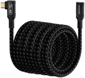 16.5ft/5m USB C Extension Cable with 90° Angle, 20Gbps USB 3.2 Gen 2 & 100W PD Charging, 4K@60Hz Nylon Braided Right Angle Male to Female USB C Cord, for Monitor, Hard Drive