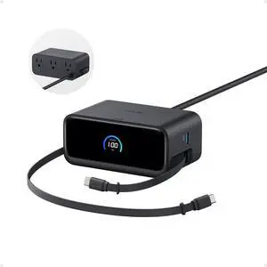 Anker Nano Charging Station, 7-in-1 USB-C Power Strip for iPhone 16/17, 2.3 ft Anker InstaCord Retractable Cable, 3 USB-C, 1 USB-A, 3 AC, 100W Fast Charging Desktop Accessory for MacBook, Home, Office