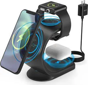 Wireless Charger,Wireless Charging Station for Apple Devices, Magnetic 3 in 1 Wireless Charging Stand with QC3.0 Adapter,ALUXKEE Wireless Charging Dock for iPhone 14/13/12 Series AirPods iWatch