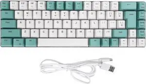 CHEOTIME Wired Keyboard, 68 Key RGB Mechanical Wired Keyboard Compact 60 Percent with Backlit Lighting for PC Laptop Gamers Typists Travel (Green White Color Block)