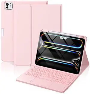 for iPad Pro 11-inch Case with Keyboard (M5/M4) - Magnetic Wireless Detachable Keyboard with Multi-Touch Trackpad 7 Colors Backlit Stain Proof Folio Cover for Pro 11 Inch 2025 2024 - Light Pink
